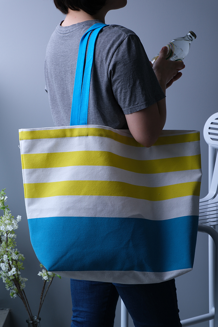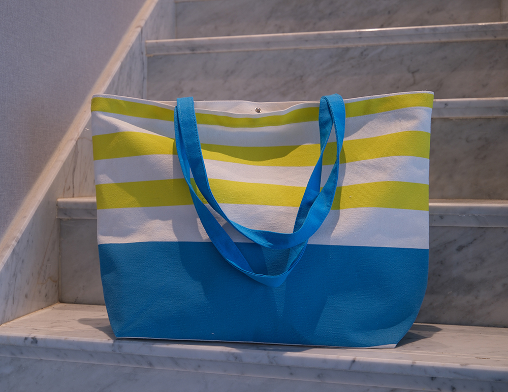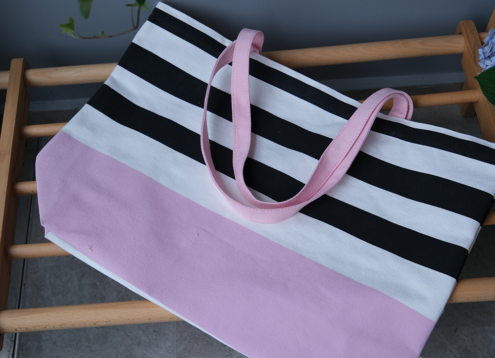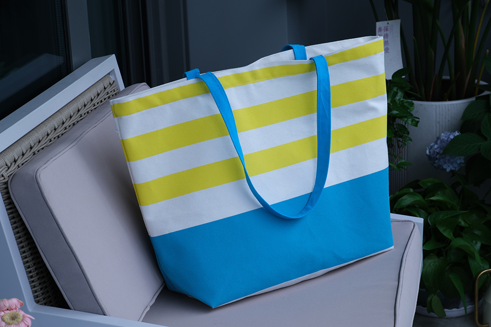Classic plaid fashion design large capacity cotton canvas beach bag