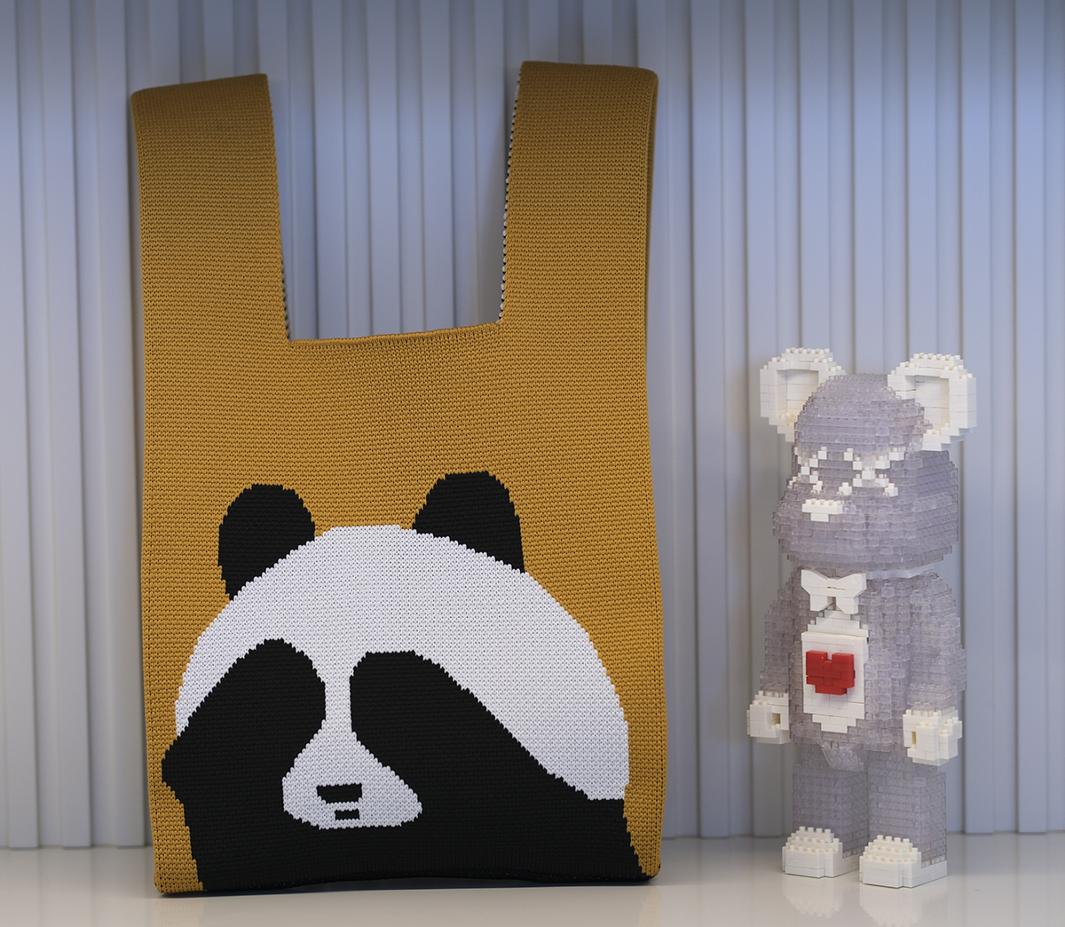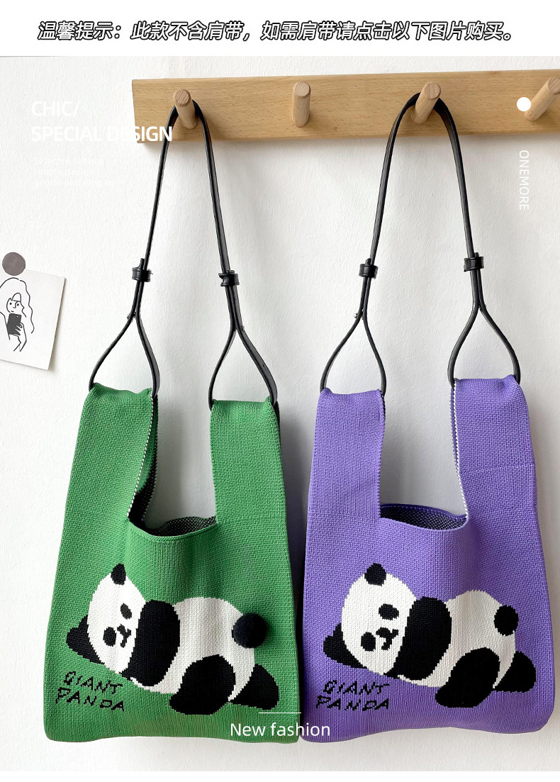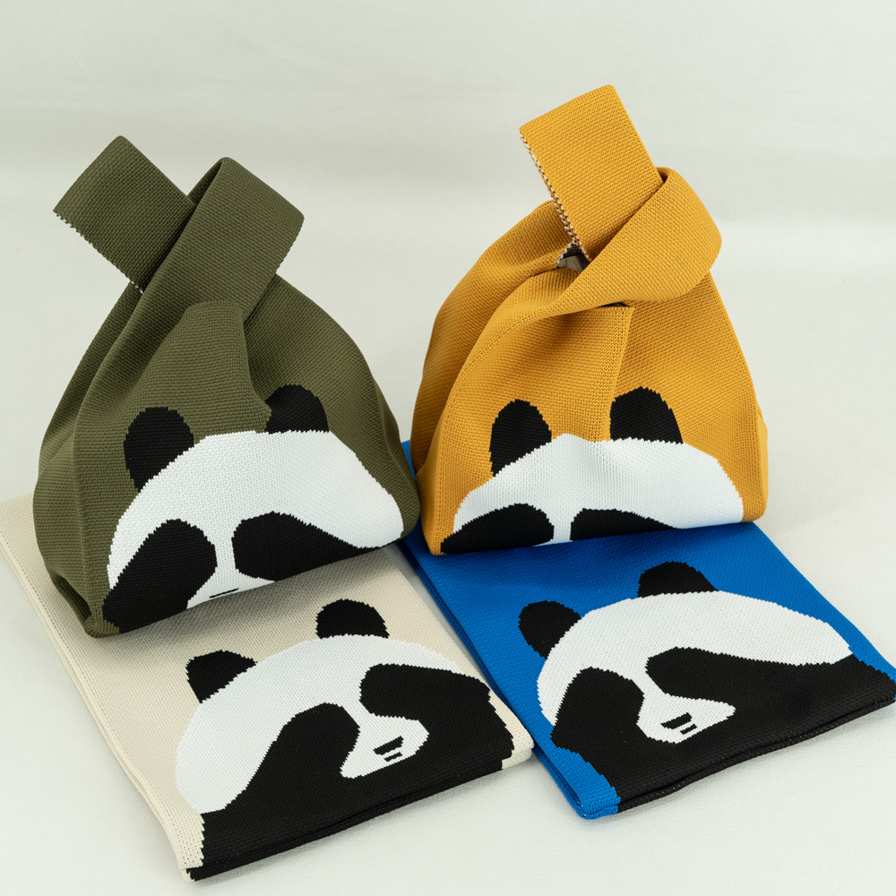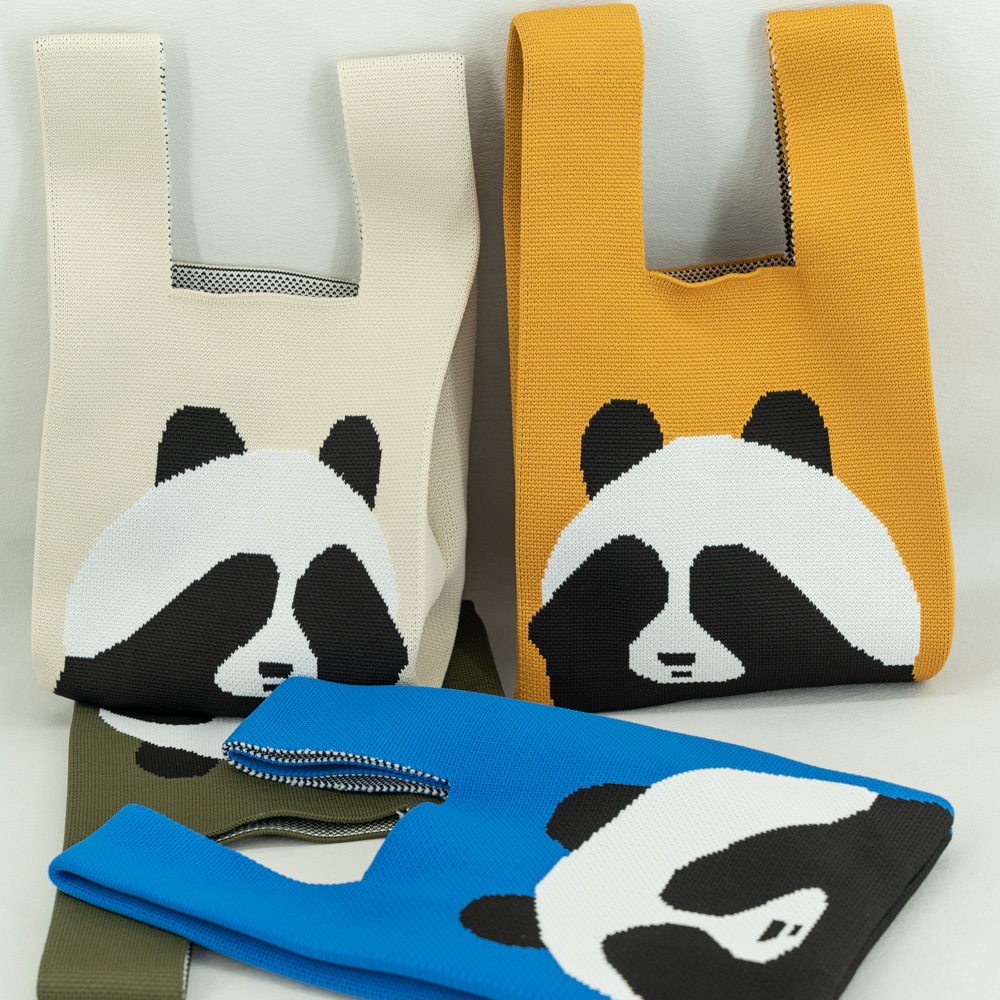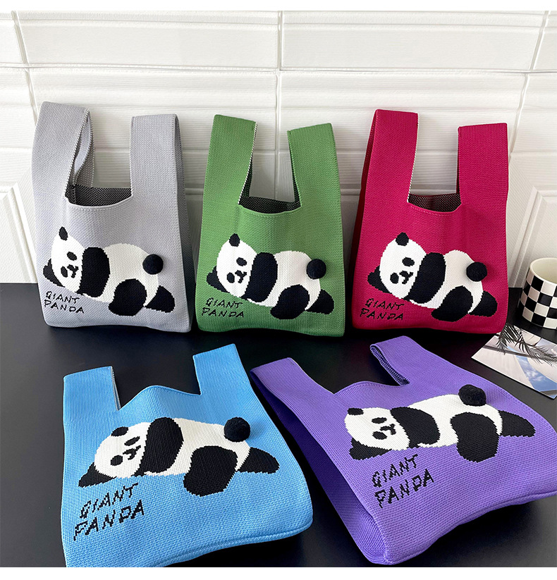 T-shirt style Panda design Fashion Handbags Nylon yarn Knitted Tote Bags For Women and girls
