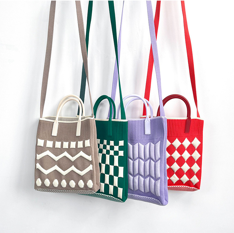 2023 new fashion autumn winter wholesale custom reusable chunky knitted shoulder mine bag for kids and girls
