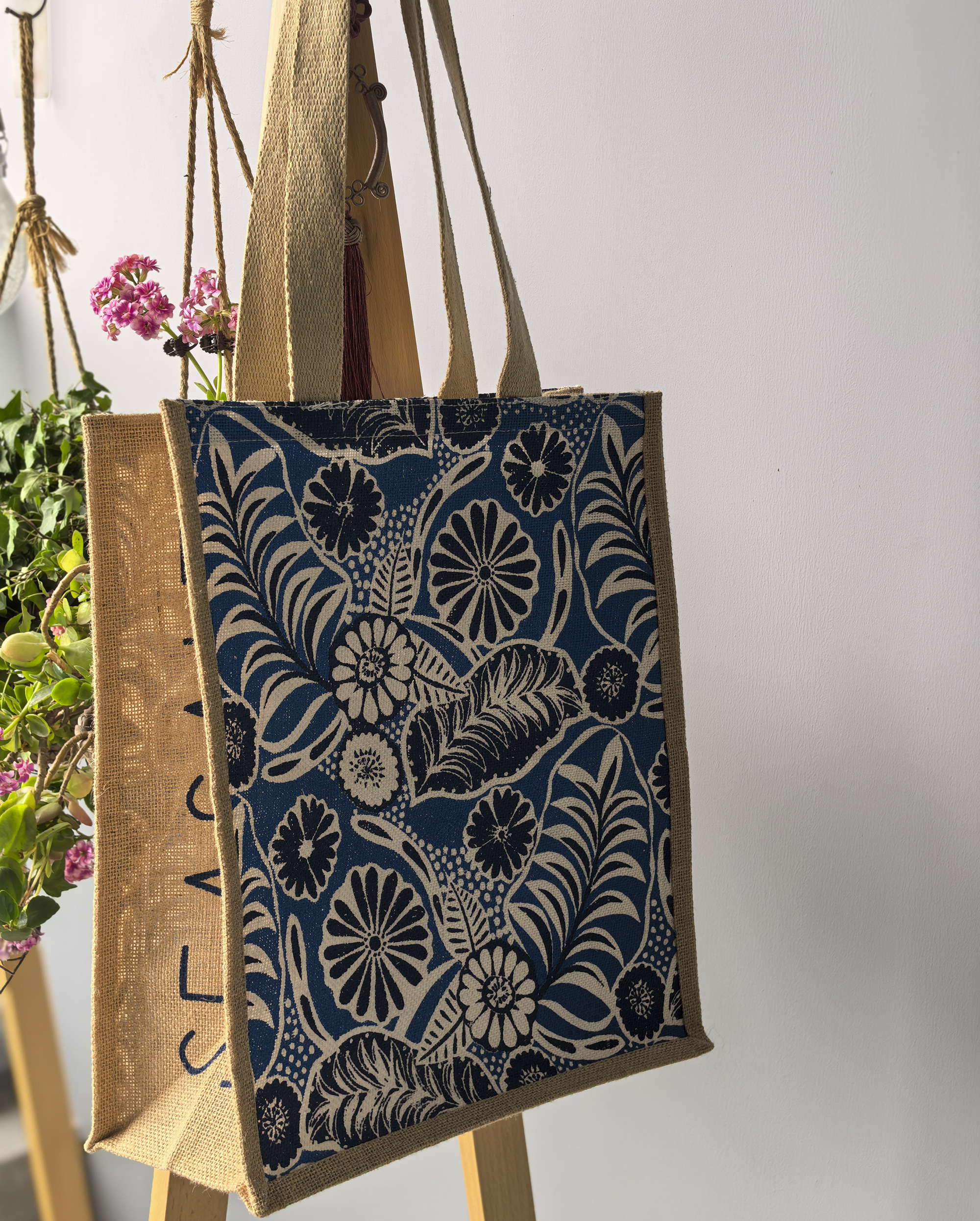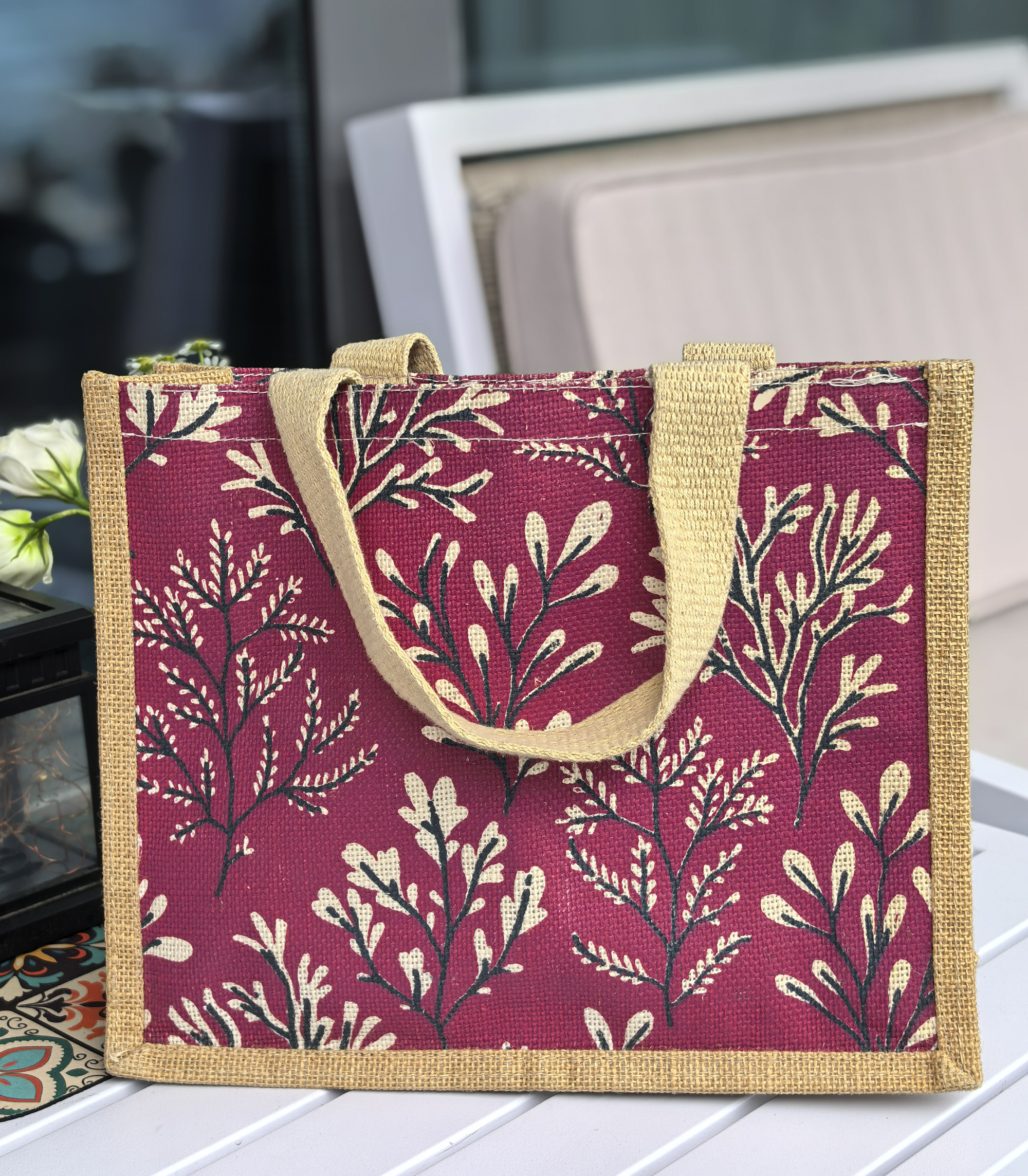 Wholesale Eco-friendly Reusable Canvas Jute Shopping Tote Bag Custom Full Colors Printed with Letter Pattern