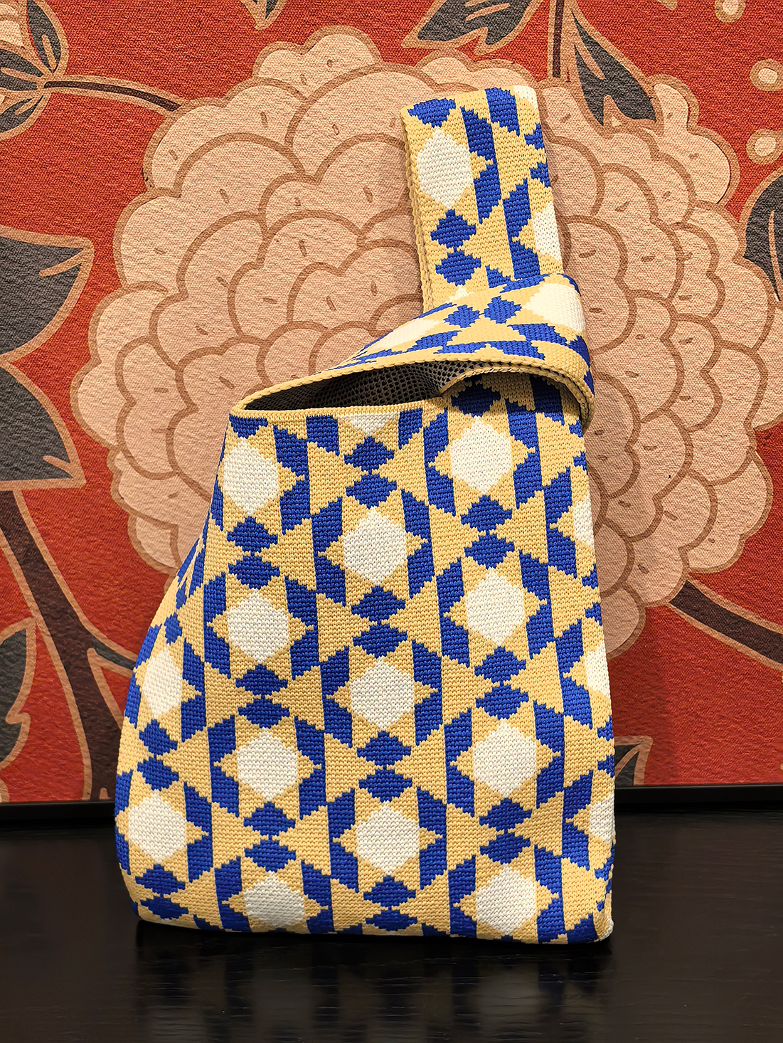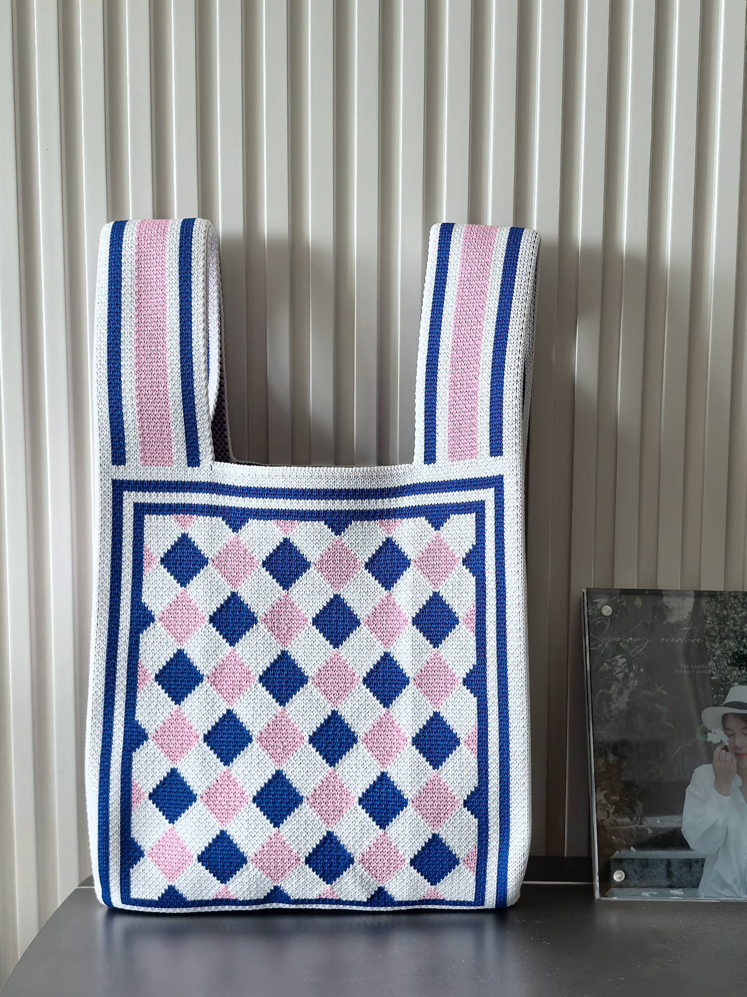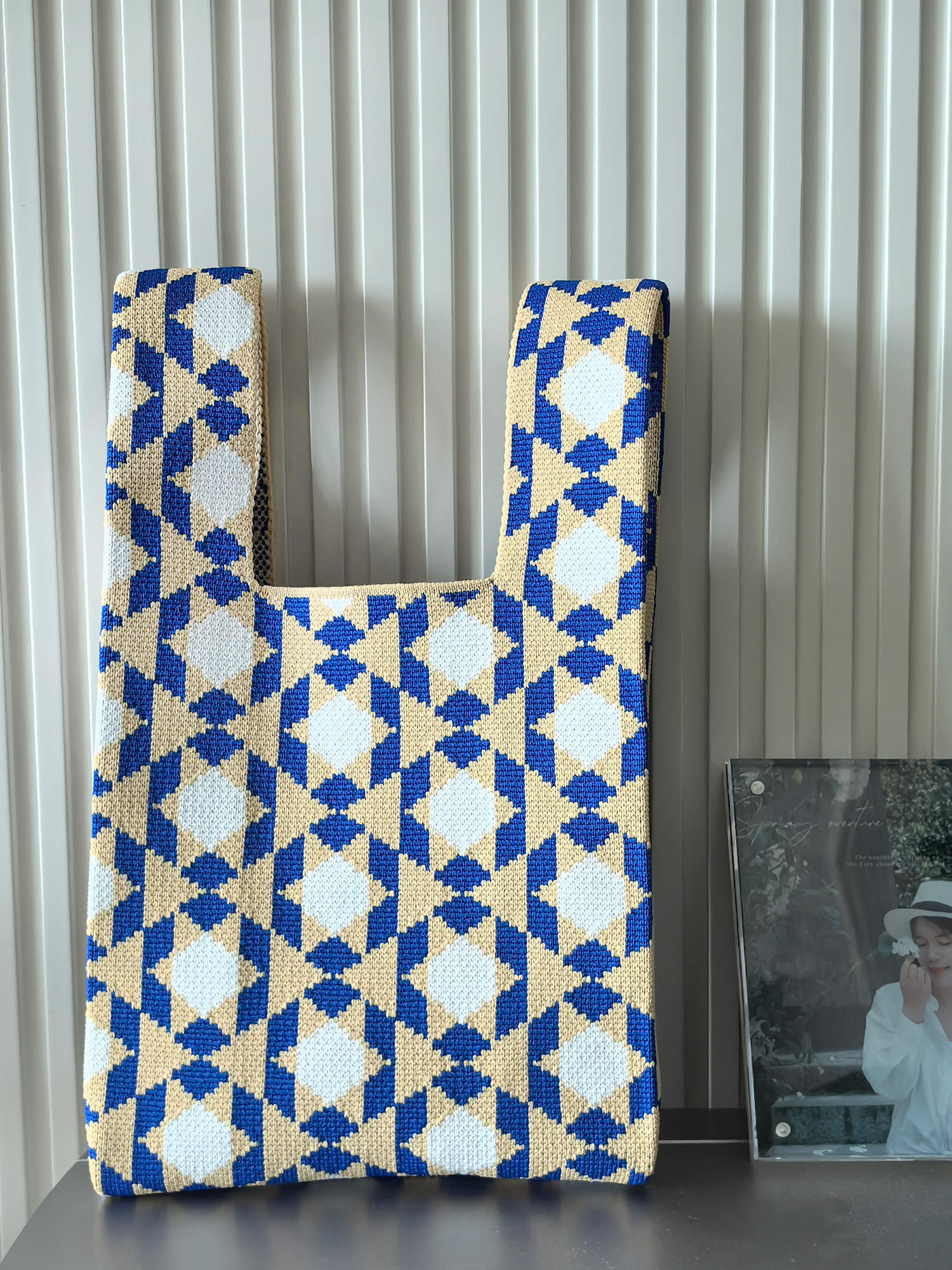 Islamic Style Geometric Pattern Knitted Wool Bucket Bag Casual Tote Box Lunch Bag Nylon Knit Shopping Tote Bag