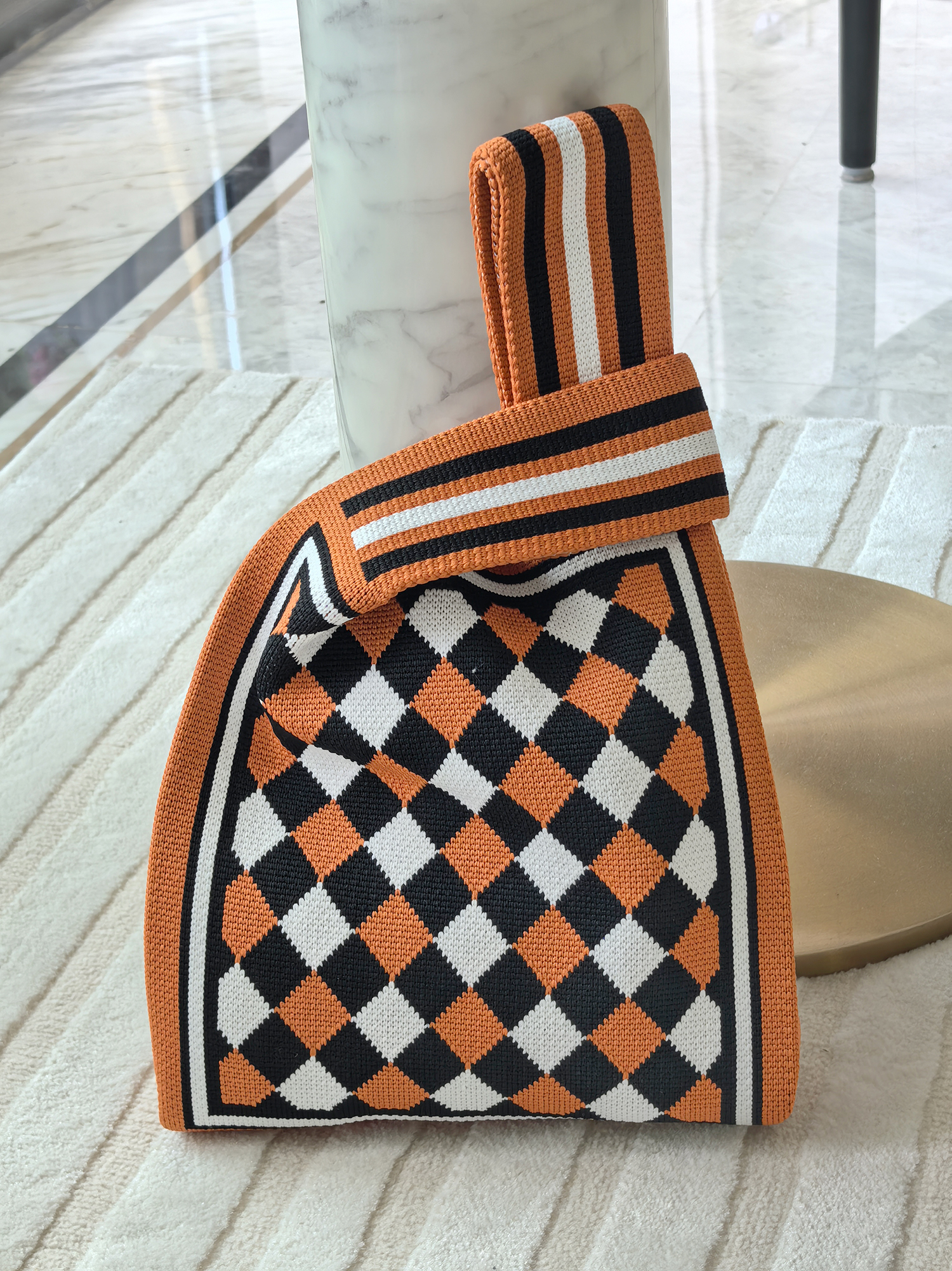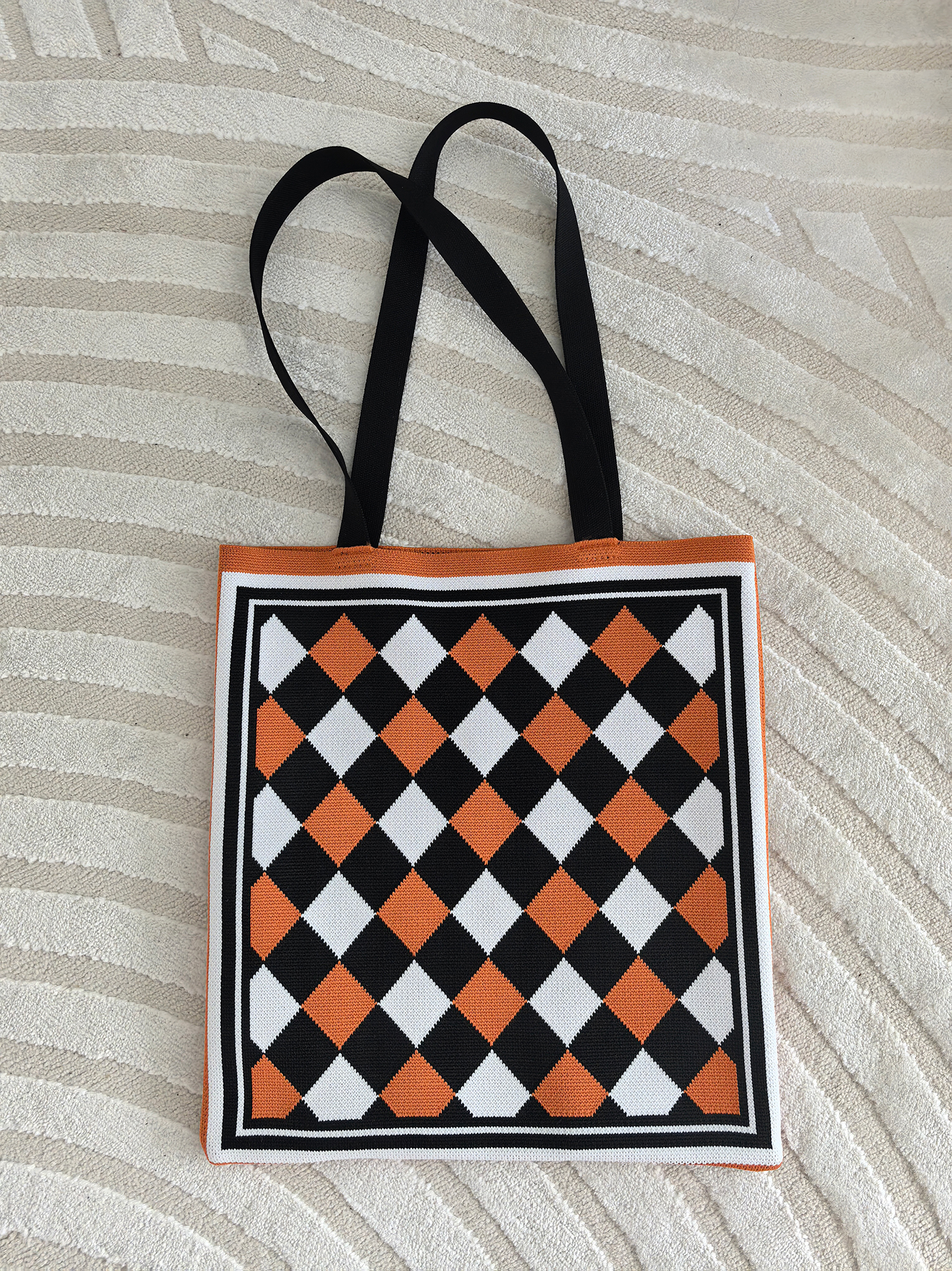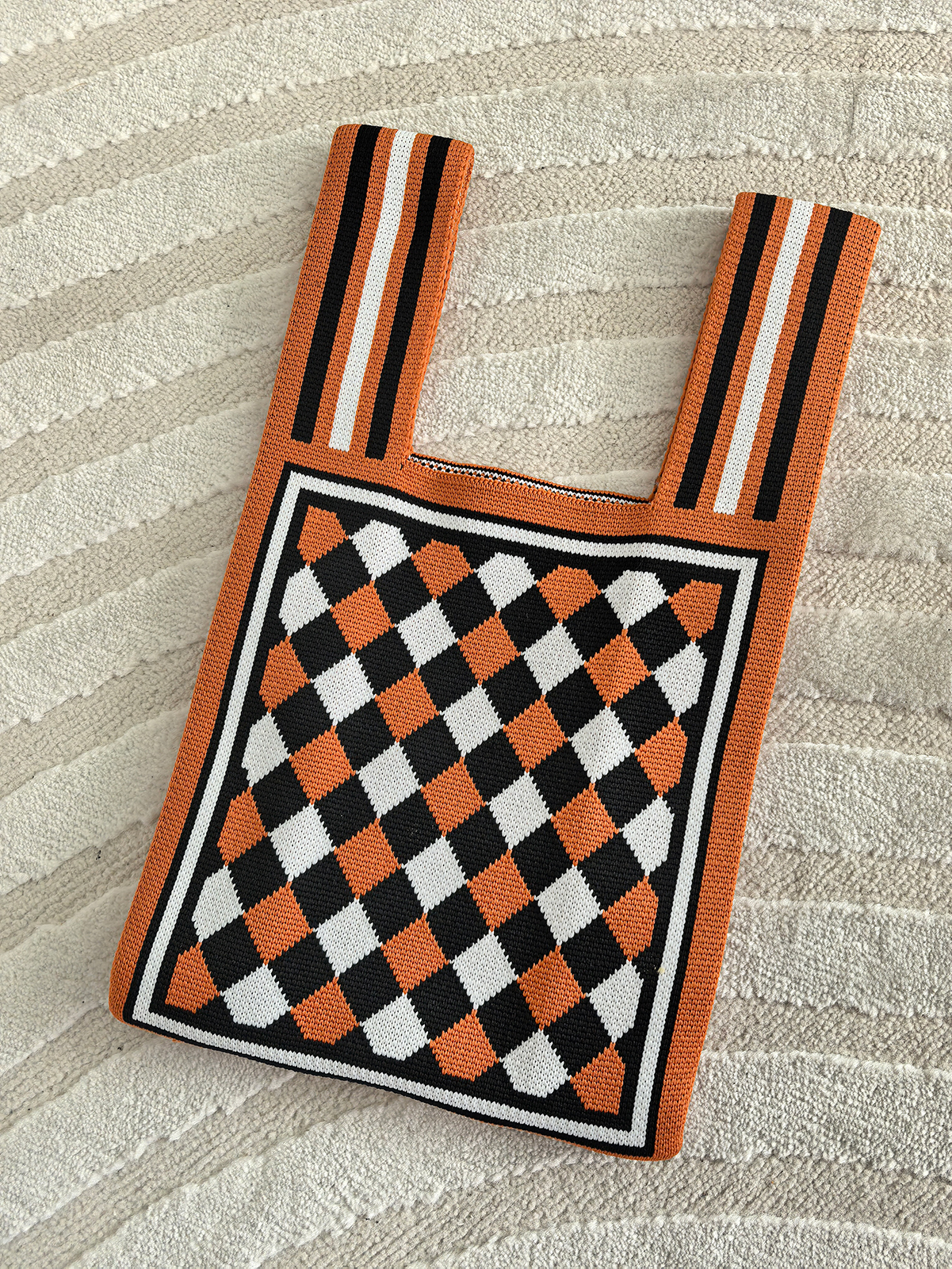 Islamic Style Geometric Pattern Knitted Wool Bucket Bag Casual Tote Box Lunch Bag Nylon Knit Shopping Tote Bag