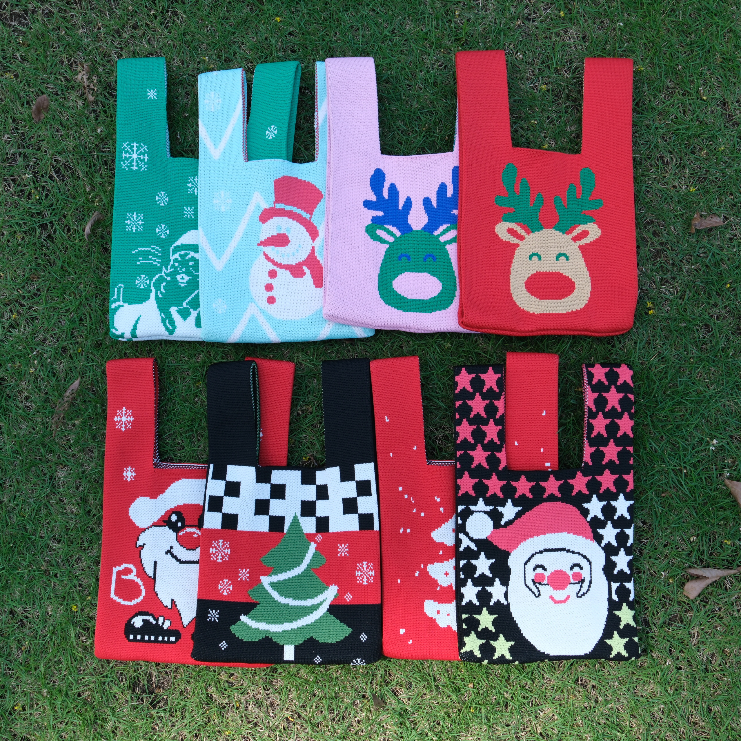 2023 fashion Knitted Weave Handbag Custom christmas Design Crochet Vest knit tote bag