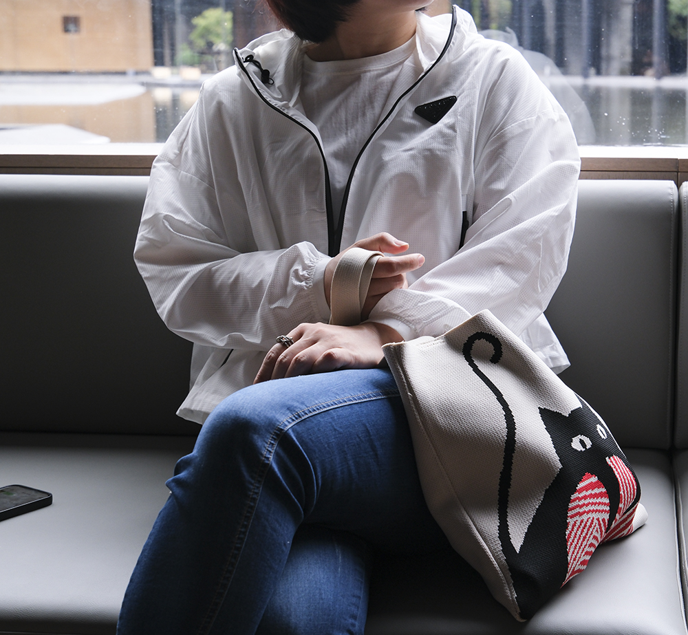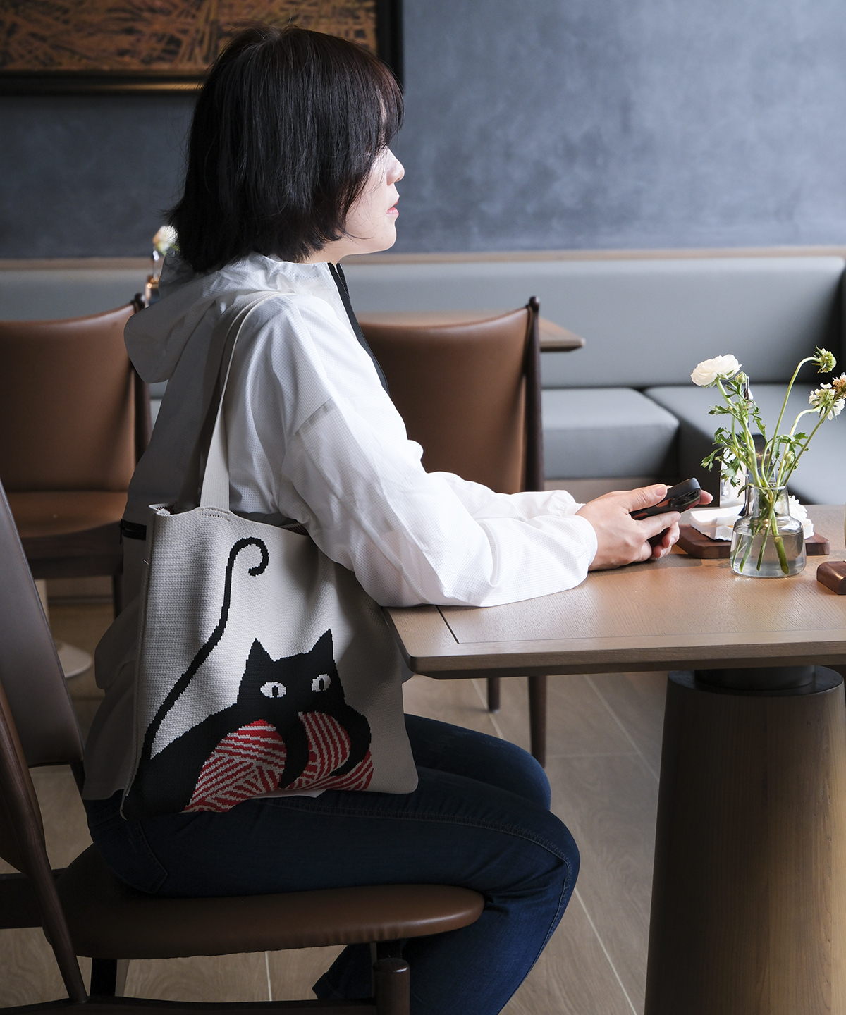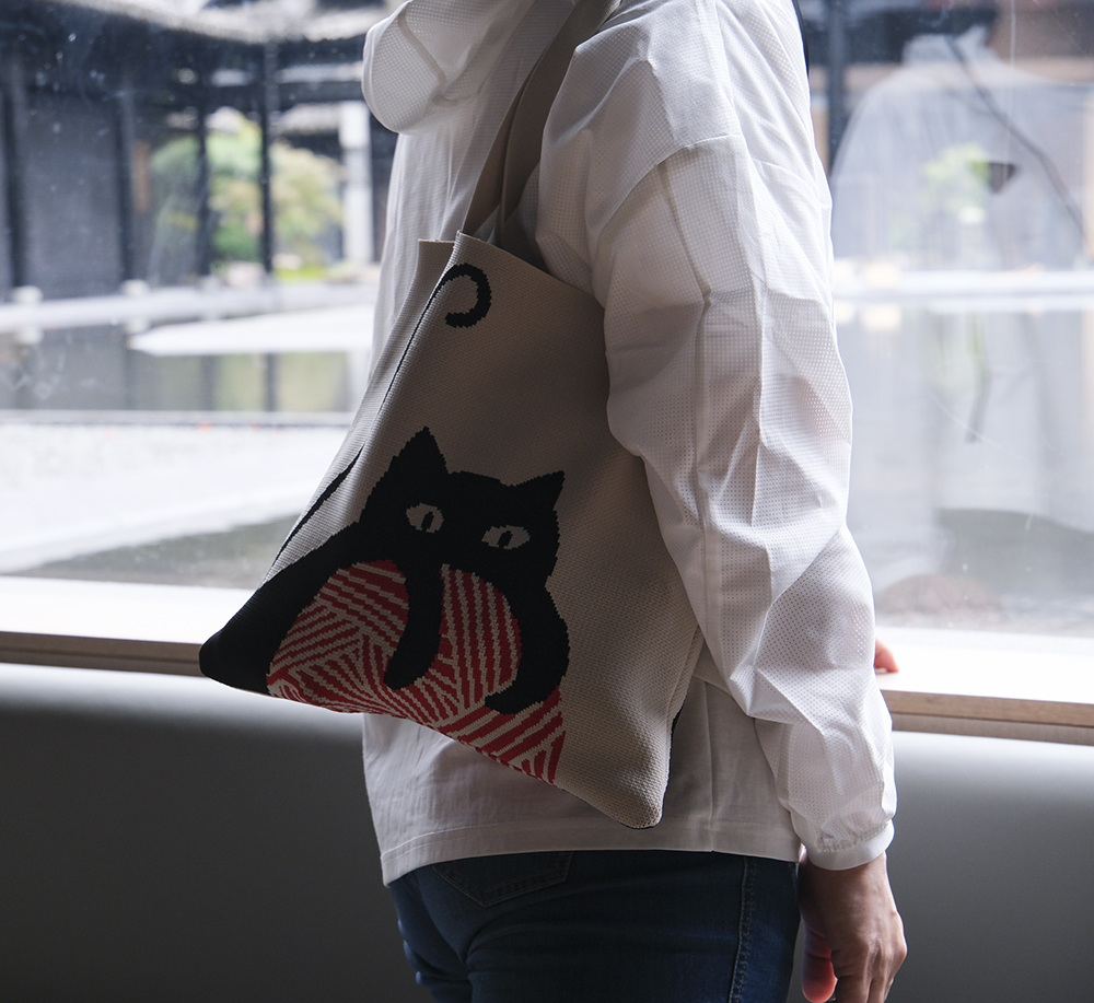 large capacity Reusable Casual Color cat design Shopping Bags Checkered Crochet Knitting Tote Bag Knit Tote Bag For Women