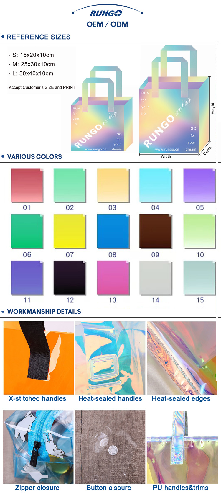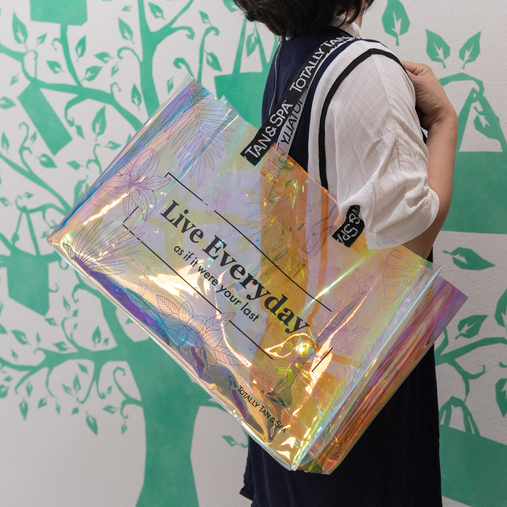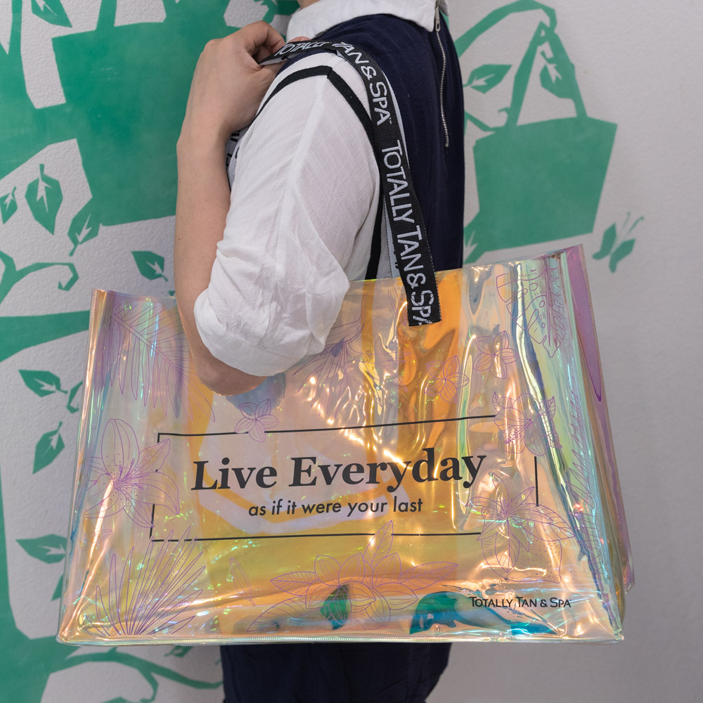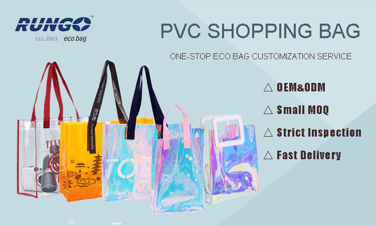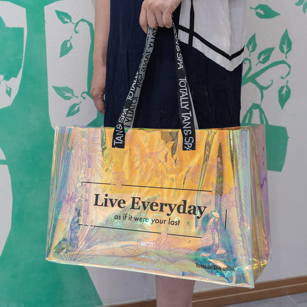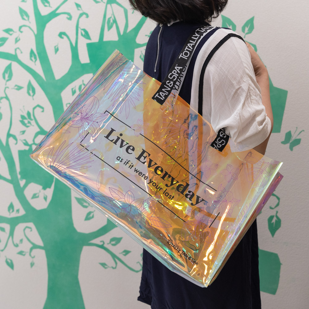 Custom logo printing webbing Handles Laser Transparent Hologram Clear PVC Tote Bag |